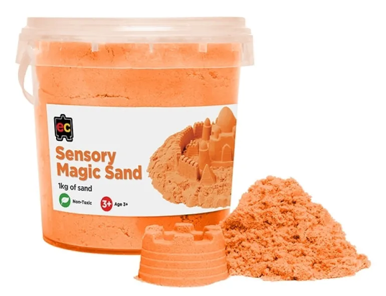 The Sensory Magic Sand can easily be moulded into castles, creations and models, then just as easily turned back into sand instantly allowing children to re-use it over and over again.