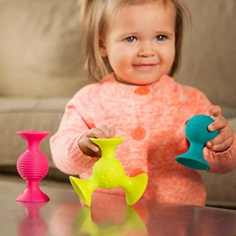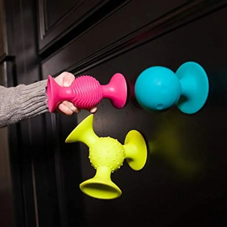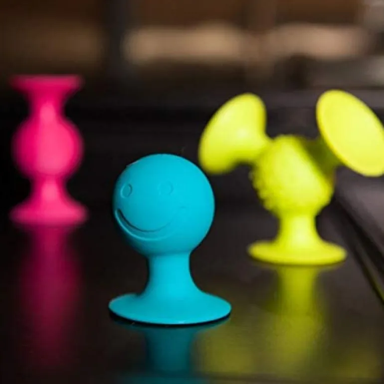 Meet pipSquigz, a set of three Fun Little Suckers for ages 6 months and up.