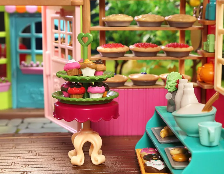 Want to get in on the baking yourself? At the Li’l Woodzeez Tickle-Your-Taste-Buds Bakery,you become the baking master. Grab your all-important baker’s hat,learn to use the miniature,plastic toy measuring cup and get started using the included cookie,muffin,and doughnut pans. Let your creativity soar and try to think of the wildest,colorful,delightful desserts that you can think of. You can’t forget safety though: Remember your oven mitts!