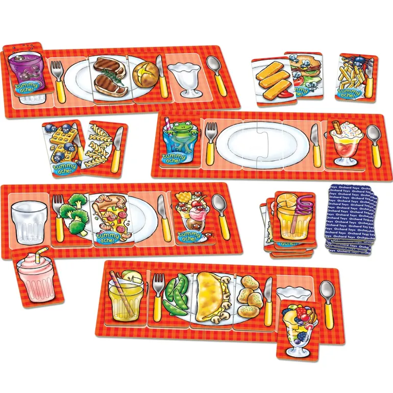 A hilarious game for all the family. Try to put together an edible meal on your place setting, but beware of making yucky combinations that will cause a tummy ache! Players take it in turns to pick up food and drink cards from the central pile and place them on the different sections of their plate. If they pick up one of the yucky ‘tummy ache’ cards they must shout out ‘Tummy ache!’ and place it on their board to be replaced later in the game. The winner is the first player to build a complete meal on their board.