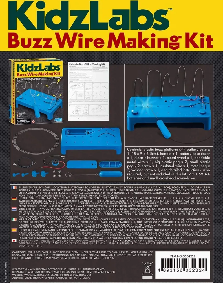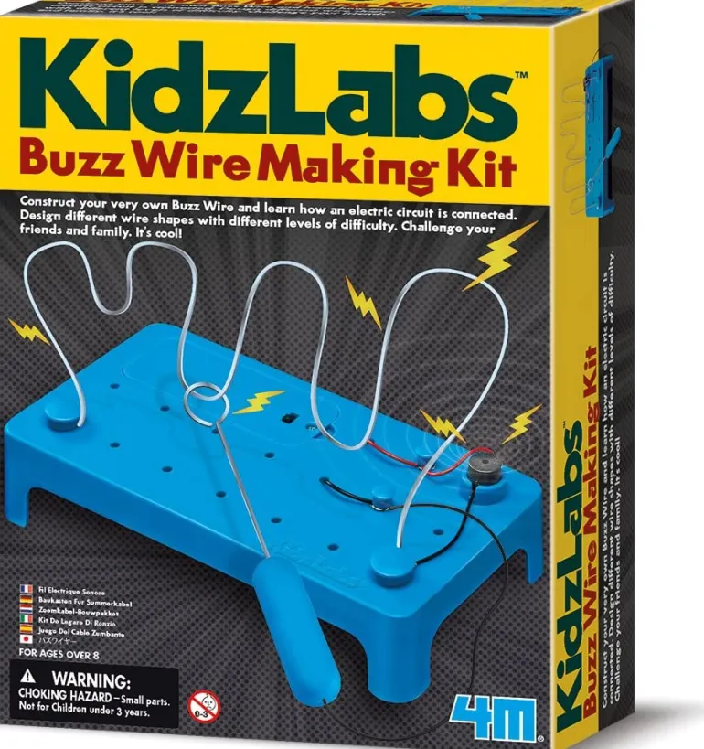 Construct a buzz wire and learn how electric circuits connect in the process. This kit includes a platform, buzzer, insulated electrical wire, and detailed instructions.