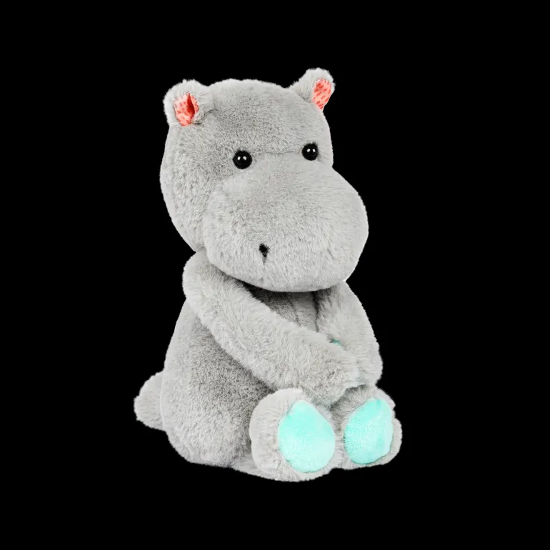 Cuddle the days away with the Happyhues Gerry Grey from B. toys! Silky and squishy, this plush hippo has a dark grey coat, pink dotted ears, and mint-coloured feet. This snuggly toy is great for playtime, bedtime, and anything-you-want time – from birth and beyond. Babies, toddlers, and older kids can safely spend hours snuggling this fluffy hippo because he’s made with high-quality materials that are entirely worry-free. Not to mention, Gerry Grey is easy to care for – he’s machine-washable, after all! This stuffed animal is also made with durability in mind, because we at B. craft timeless toys that are meant to fill not only years, but generations, with love.