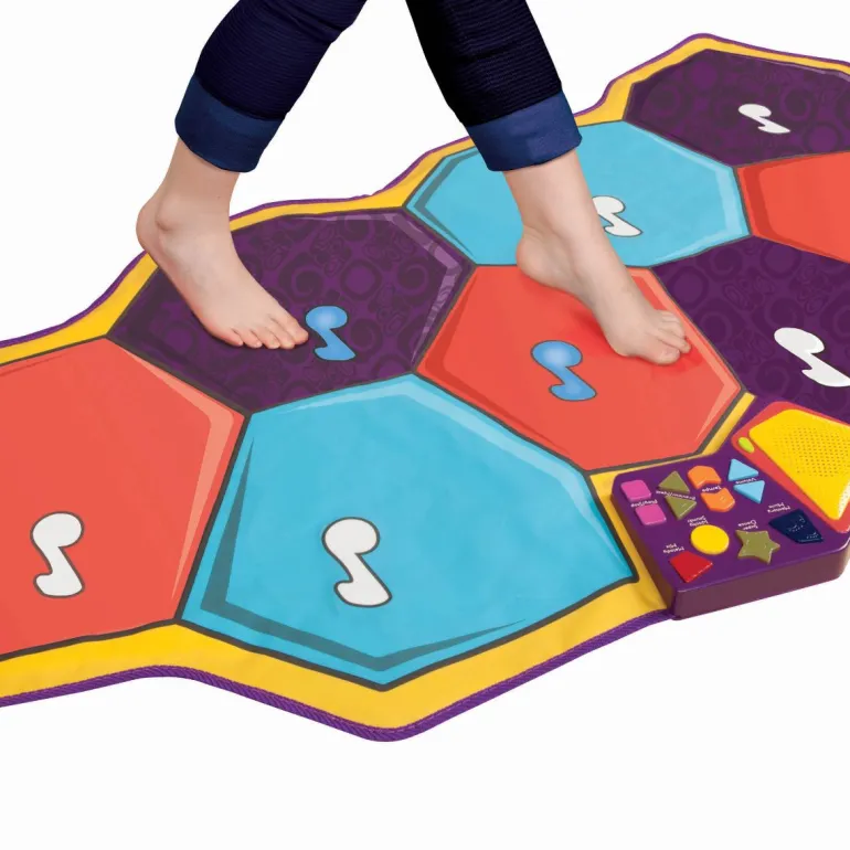 Groove, leap, laugh, and play with the Mat-A-Matics dance mat from B. toys! Soft and colourful, this foldable dance mat is packed with fun features that let children explore countless musical combinations with their own two feet (or hands!). Put your memory skills to the test in a groovy way with Memory Music by watching the musical notes light up to 10 different songs and repeating the steps. Switch to Super Dance and try to catch every single note as they glow to the rhythm. If you’re feeling silly, go for Wacky Sounds and get creative by playing the silliest combinations! And if you want to move to your own beat, pick the Melody Mix and step anywhere on the floor mat to hear familiar nursery songs. Not to mention, this mat comes with a few controls – play with the volume, change the tempo, switch between songs, and more! However children choose to play and explore, the Mat-A-Matics dance mat is an exciting way for them to discover music and stay active. 3 AA batteries are required and included. Recommended for kids 3 years and over.