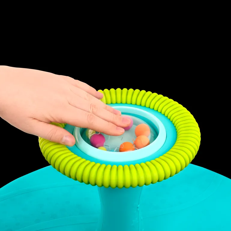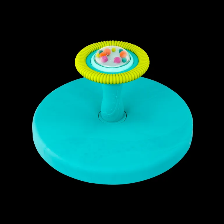 Spin, play and whirl with Twirly Time from B. play! This interactive seat is sized just right for toddlers and it comes with fun features to explore. Little ones can play with the colourful bead popper on top, just push down to make it go pop, pop, pop! When they’re ready to spin, kids can sit down on the sturdy base and get comfy. All kids need to do is grab the textured, easy-grip handle and turn it to start twirling! The seat base is where the spinning actually happens but kiddos can control the fun by using the handle! Not only is it fun, but playing with this spinning activity seat can help improve physical development and coordination too. Recommended for toddlers 2 years and over.
