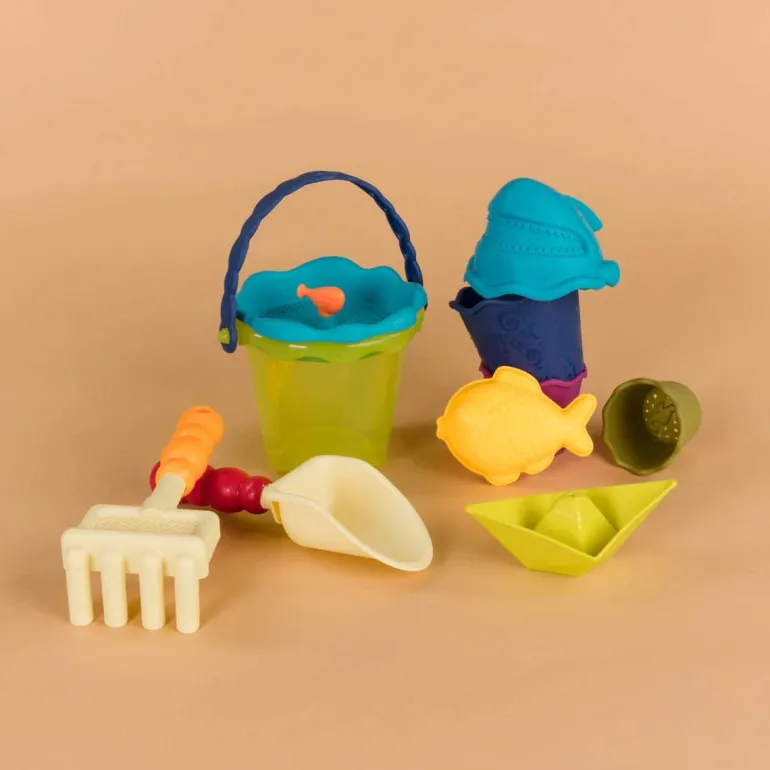 Roll on over to the beach, sandbox, or backyard with the red Wavy-Wagon from B. toys! This pull-along cart is filled with fun and funky ideas that will add a splash of creativity to your little one’s playtime. Sift through the sand with the unique sifter, build sandcastles with the different-sized cups, and add little fishy sculptures with the detailed mold. And the little boat can even be used during bath time! Not to mention, the shovel and rake are great for building fine motor skills and hand-eye coordination. This whole playset will make everyone (big or small) want to dig in! Recommended for children 18 months and over.