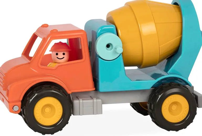 Easy to grab and drive around the playground; make sure the construction job is done right with the Cement Mixer Truck from Battat. Toy trucks for toddlers with a sturdy feel and a vintage look? We got it covered! The whole collection is tiny hands friendly and comes with a little familiar character. Movable parts promote imaginative play, hand-eye coordination and motor skills. This Battat Cement Mixer Truck is heavy-duty fun for itty bitty hands. Great sandbox toys… Watch your child grab these (brand-new) vintage toy trucks, make his big heroic entrance in the sandbox. Whether indoor or outdoor, just vroooooom in the fun with Battat Trucks for toddlers.