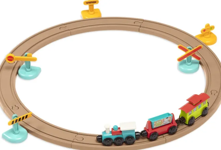 Choo-choo! With the All Aboard Train Set by Battat, your curious lil’ conductor can build a unique railway, then go on an imaginative journey on it. This classic playset comes with 19 tiny hands-friendly train tracks – there are curved tracks, straight tracks, and a cross track to allow for limitless configurations.