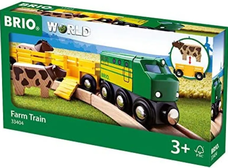The horse and the cow need to be transported out to the pasture. Help them get onboard the train by folding down the ramp. No animals will have to feel crowded as each will have their own wagon. Let the engine pull them along to their final stop.