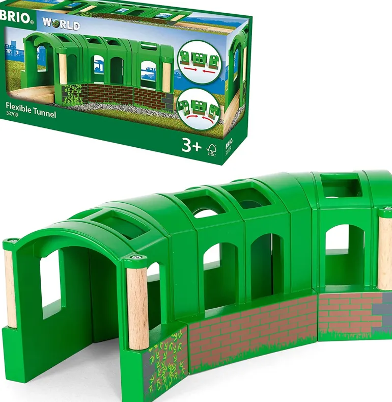 Versatile tunnel in three parts. Connected together or placed separately, they are a complete match with BRIO’s trains and tracks.