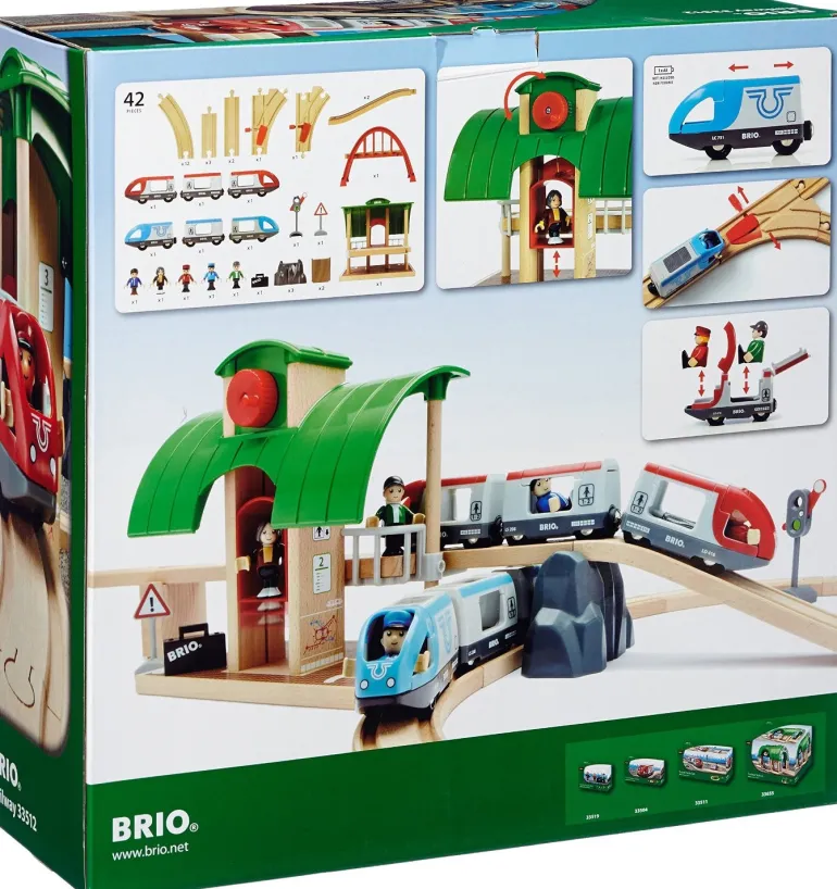 - 21 track sections, 2 special mechanical switch tracks, train signal, warning sign and 3 Brio characters