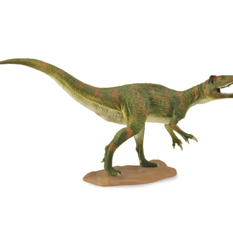 The model is based on the holotype’s remains and the restored skeleton that is on display at the Fukui Prefectural Dinosaur Museum in Japan. CollectA’s reconstruction has followed the idea that megoraptorans are allosauroids. They wanted to convey that it is a lively and lightly built carnivore. The holotype is of an immature example and so CollectA has scaled it up to presumed adult size.