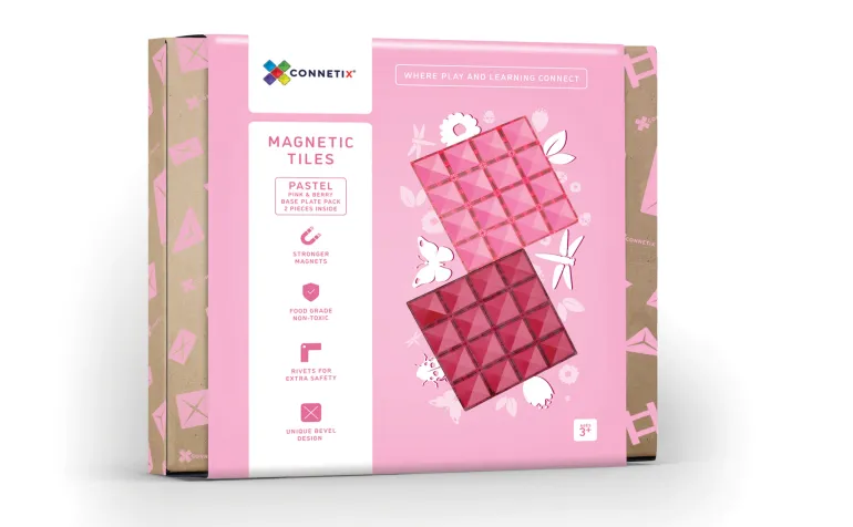 When it comes to magnetic tile play, it’s all about that base! Help children bring to life their inspired ideas and build twice as tall with our 2 piece Base Plate Pack, featuring one berry and one pink 30cm x 30cm powerful magnetic building plate!