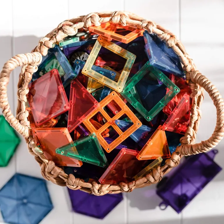 It allows children to construct 2D and 3D shapes, using their imagination and creativity to play and build.