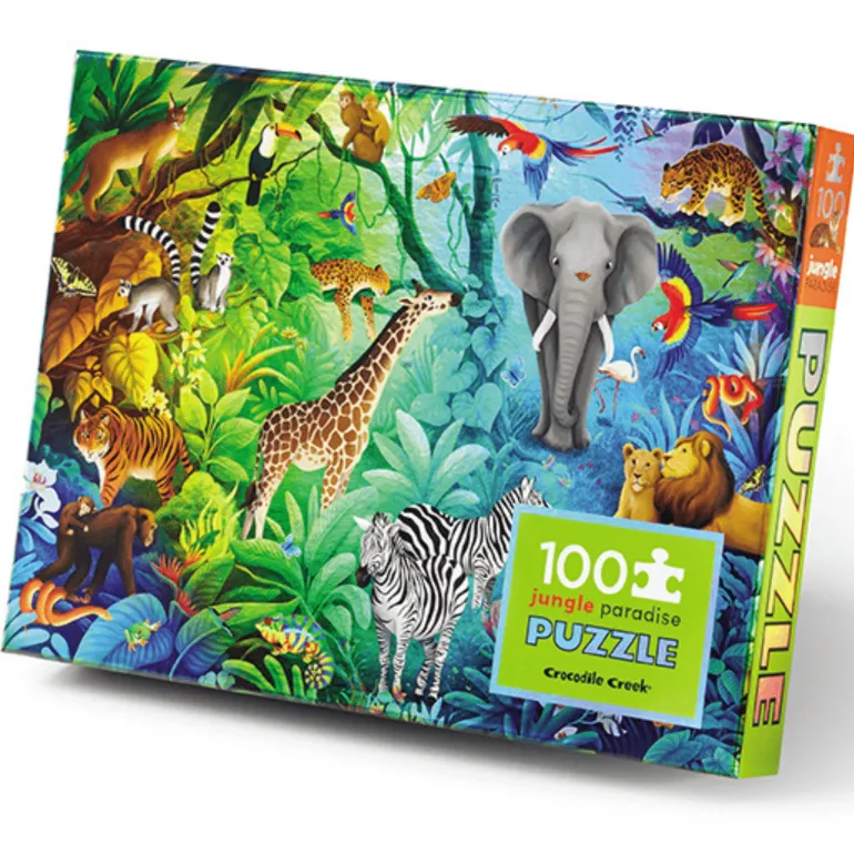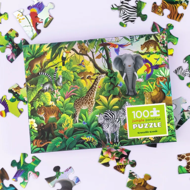 Children will delight in exploring this beautifully illustrated 100PC Jungle Paradise puzzle printed on shiny, iridescent holographic foil.
