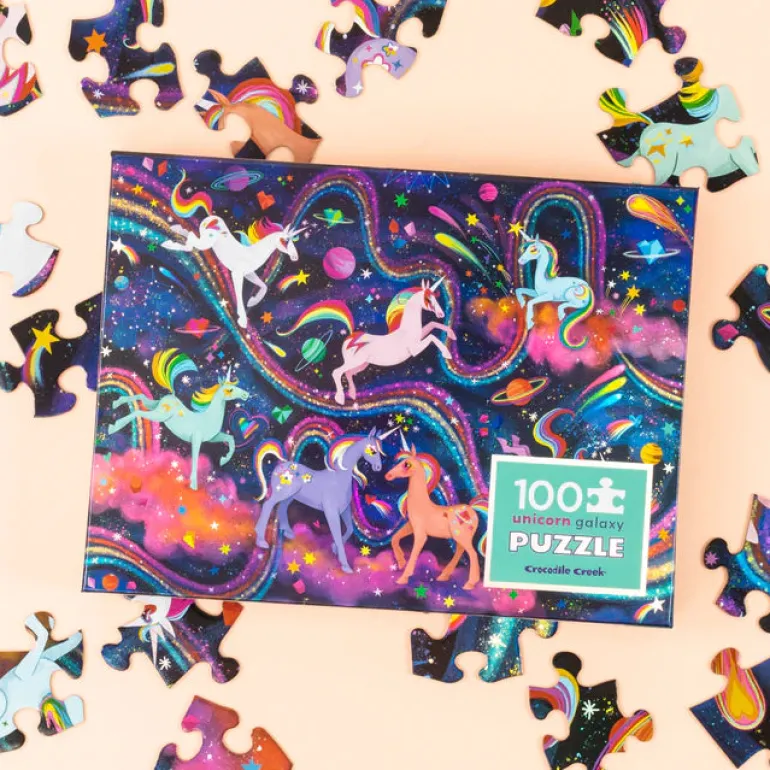 Children will delight in exploring this beautifully illustrated 100PC Unicorn Galaxy puzzle printed on shiny, iridescent holographic foil.