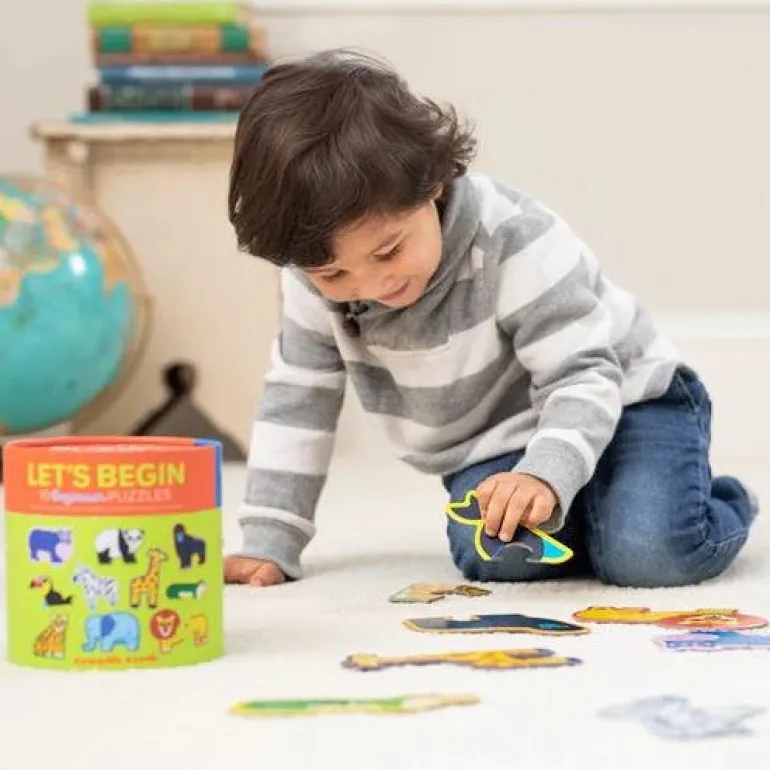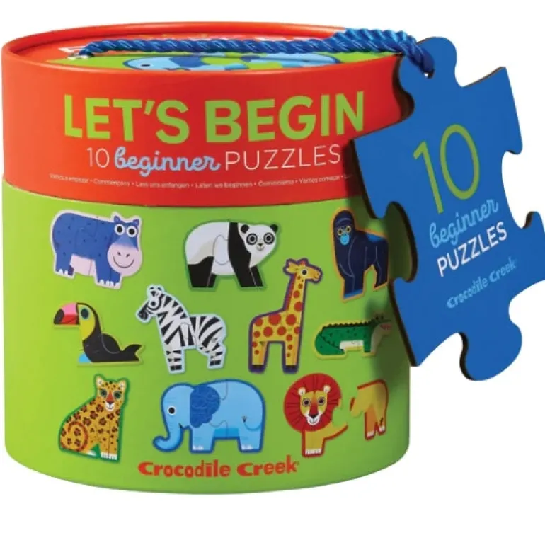 - 10 different 2-piece puzzles with pieces perfect for little hands