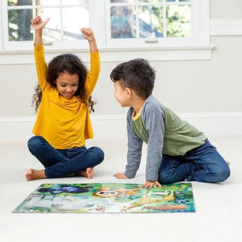 Lions and tigers and lemurs, oh my! Children can spot their favourite wild animals in this beautifully illustrated 36-piece floor puzzle. All wrapped up in its unique contour-shaped storage box, the jumbo, sturdy pieces of this high-quality puzzle are ideal for little hands.