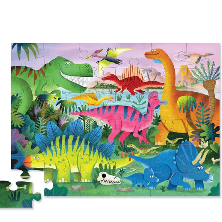Little dinosaur enthusiasts can brush up on their dino-identification in this beautifully illustrated 36-piece floor puzzle. All wrapped up in its unique contour-shaped storage box, the jumbo, sturdy pieces of this high-quality puzzle are ideal for little hands.