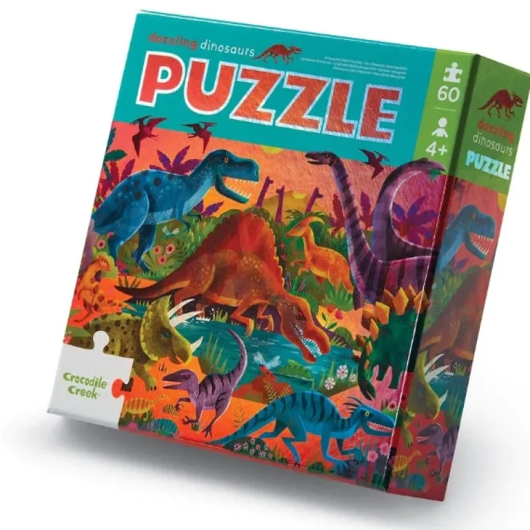 Children will delight in exploring this beautifully illustrated, dazzling dinosaur jigsaw puzzle printed on shiny, iridescent holographic foil.