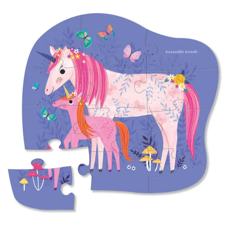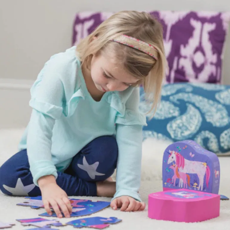 The most magical of unicorns abound in this 12-piece mini puzzle, all wrapped up in a unique contour-shaped storage box. Perfect for puzzling enthusiasts aged 2+, the jumbo, sturdy pieces of this high-quality puzzle are ideal for little hands.