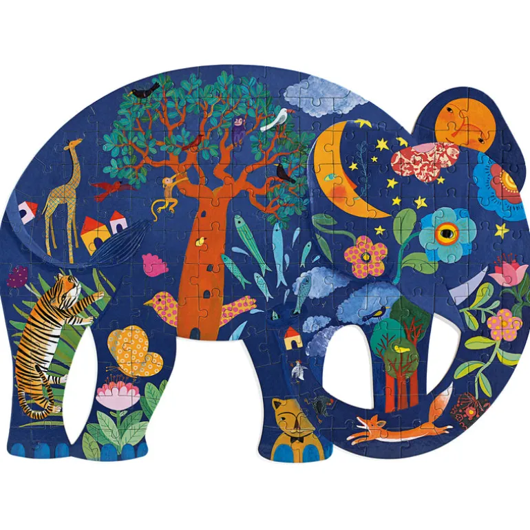 A beautifully illustrated puzzle featuring 150 pieces that join to create a lovely shaped elephant.