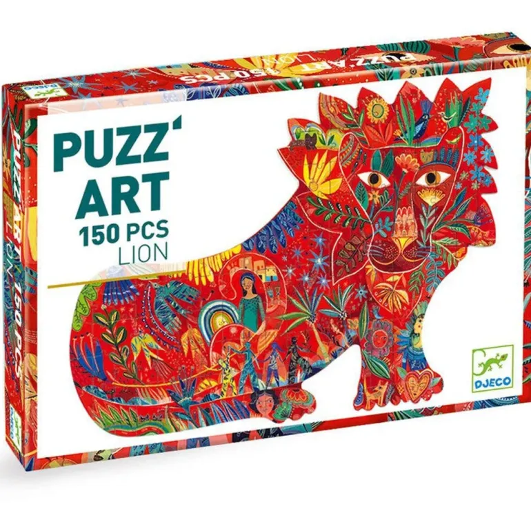 A beautifully illustrated puzzle features 150 pieces that join to create a majestic lion. This lion shaped puzzle offers additional challenge with the interesting border. The completed puzzle can either be taken apart to be redone or framed as an interesting piece of wall art.