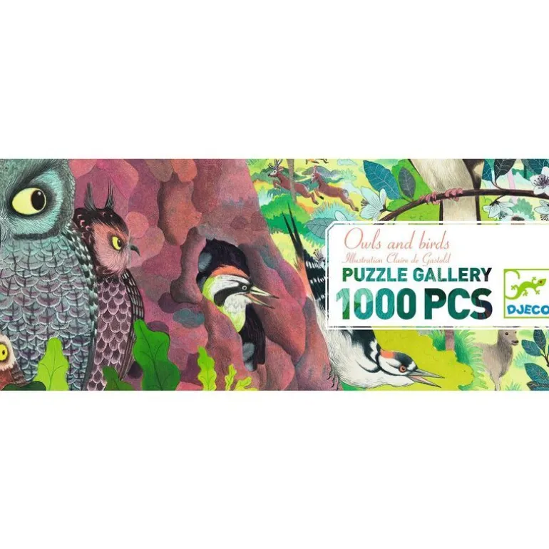 Be lulled by the concert of birds, the owls fall asleep and curious little ones come out of their hiding places. This is a stunning 1000 piece gallery puzzle. Djeco illustrators went wild with an all-new, super long format!