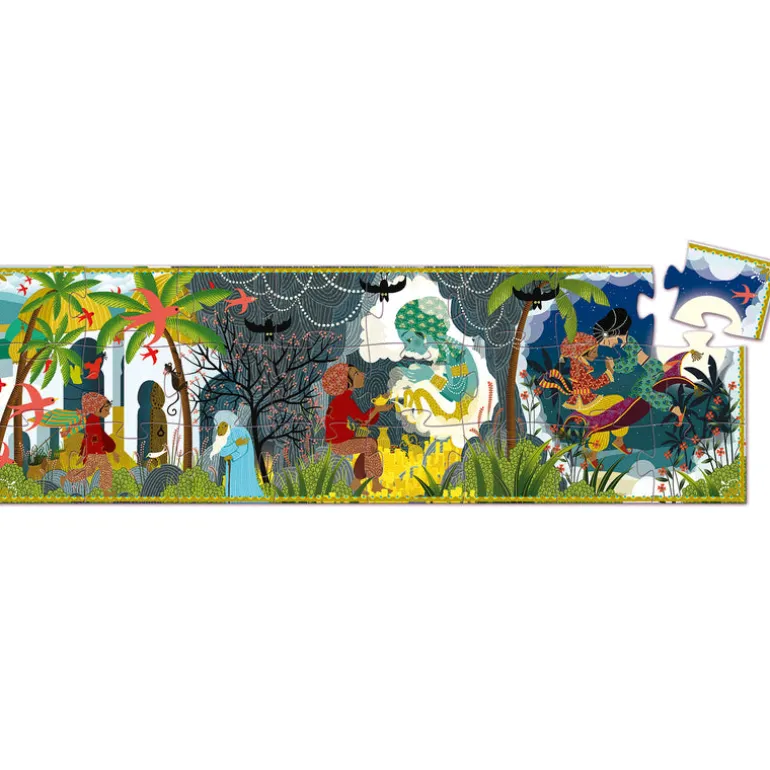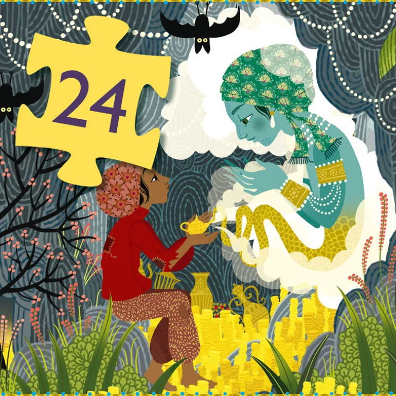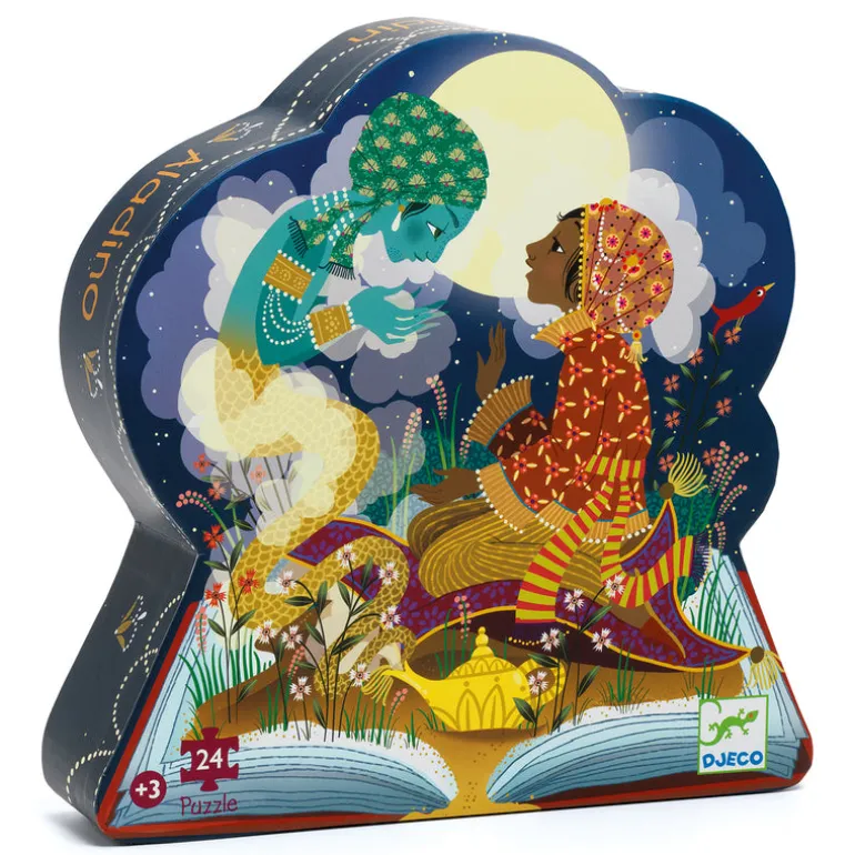 Piece together the story of Aladdin with this stunning puzzle. A 24 piece puzzle that comes packaged in an eye-catching silhouette Aladdin shaped box. The puzzle features an illustration that tells just a small piece of Aladdin’s story. Great for building problem-solving skills and fine motor skills.