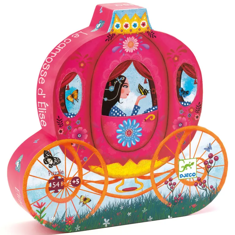 This Djeco puzzle comes in a colourful silhouette presentation box that would make a lovely decoration in any girl s bedroom. Elise s Carriage is made from 54 thick cardboard pieces with a glossy finish and features a detailed illustration of Princess Elise on her journey back to her castle.