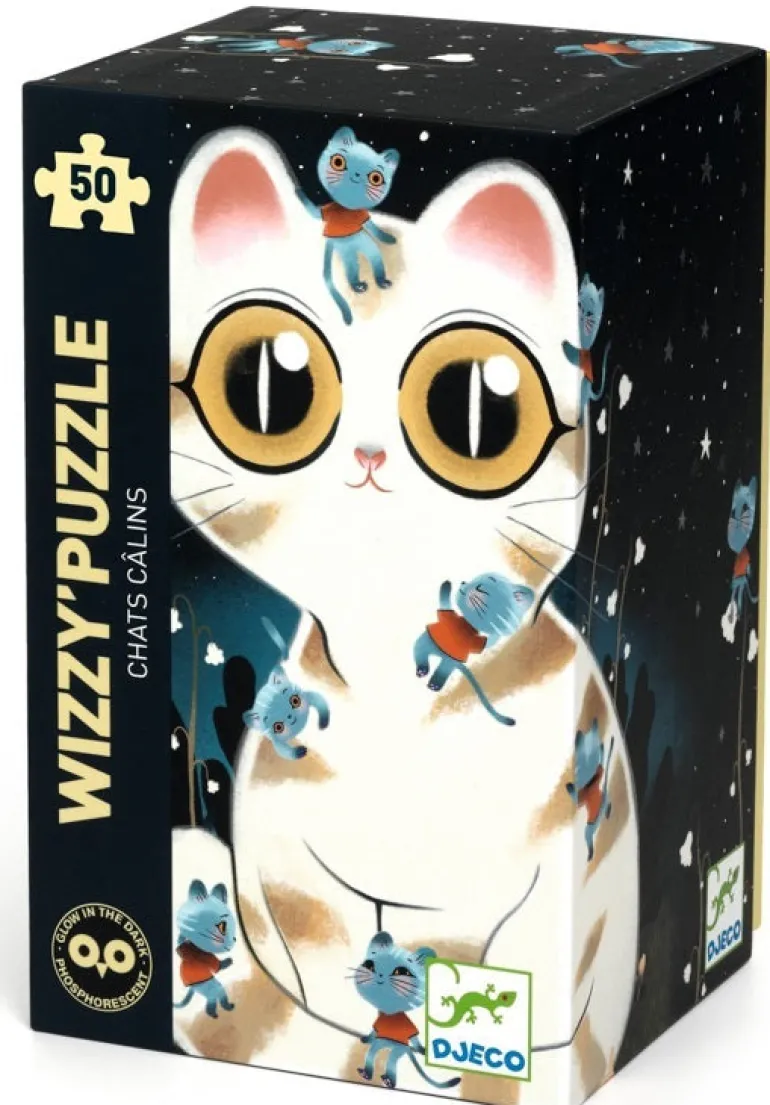 A 50-piece kitty cat puzzle designed with a twist. Printed with fluorescent ink, this cool puzzle glows in the dark. Once children have pieced the puzzle together they will enjoy seeing the finished puzzle in the dark.