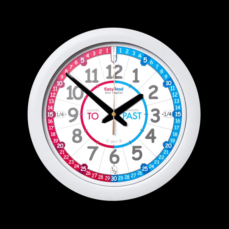 This Red Blue Past & To Wall Clock is an ideal first clock to help children learn to tell the time at home. Its clear design and simple 3-step teaching system make it very easy for children to learn to read the time in terms of ‘minutes past’ and ‘minutes to’ the hour. Teach your children the 3-step system and they will quickly master this essential life skill, and gain confidence and pride in their achievement!