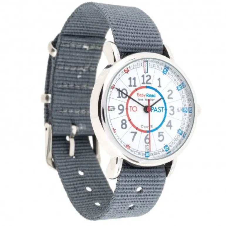 This good looking 33mm diameter watch will help your child master telling-the-time using the unique EasyRead 3-Step Teaching System. The large clear dial shows every detail your child needs and the hands them which numbers to read. It’s as simple as 1-2-3.
