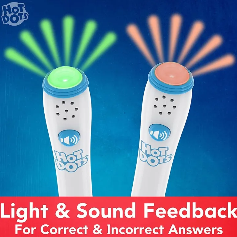 Use the included, interactive Hot Dots pen to receive positive feedback or gentle redirection—lights and sounds indicate right and wrong answers, enabling kids to learn and practice critical learning skills independently, at their own pace, at home, in the classroom, or on the go!