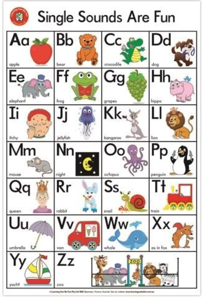 All the letters of the alphabet are here with the correct phonetic images for young readers to practice and learn.