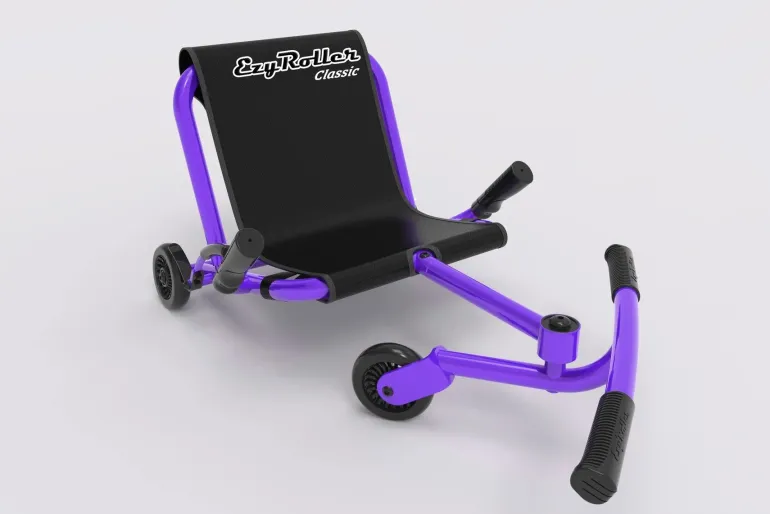 The Ezyroller moves like a snake without chains, pedals or batteries. No need for a downhill slope to move forward. Just an easy gentle swinging movement on the front paddle generates forward momentum. The child also uses their feet to steer the Ezyroller. It is super-easy and super-fun! We have yet to meet a child who is not riding and having fun in under 1 minute. The Ezyroller can be ridden on any hard surface, indoors and outdoors