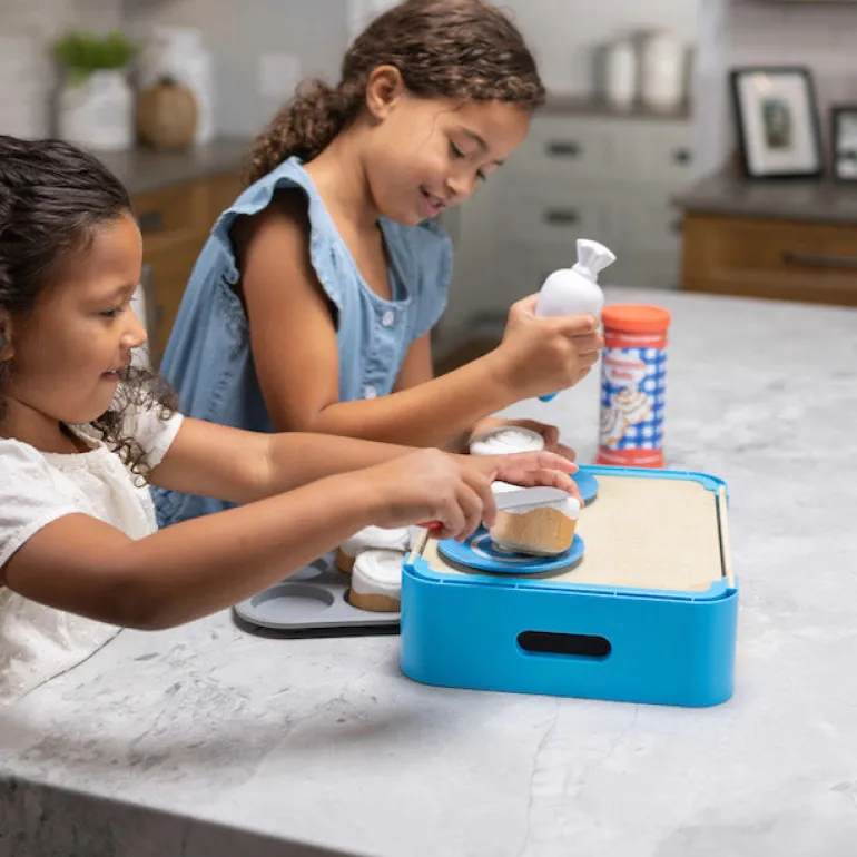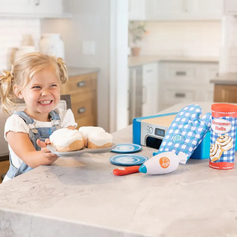 Pop open the canister and pull out the four plush cinnamon rolls – they can actually be unrolled and rolled back up! Place them on the tray, bake them in the oven, use the piping bag to add the icing, and then spread it out perfectly with the child-safe knife. You can practically smell the oven-fresh joy! Made with high-quality materials and featuring an “oven” that’s also a storage crate, the Pretendables Cinnamon Roll Set is as lovely as a sunny weekend morning.