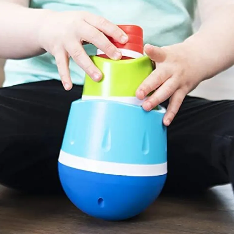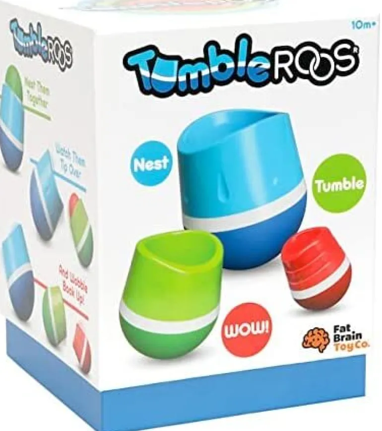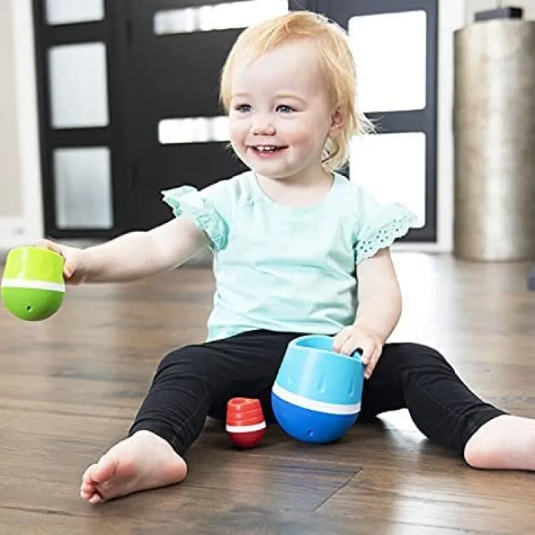 Nest, tumble, WOW! Each TumbleRoo features a weighted base for wonderful wobbling, a concave top for nesting, and unique, subtle textures to feel and explore. Nest the smallest inside the other two – The moment you let go, the whole stack tips over and they all tumble apart, one at a time, to rock and wobble around and around. Little ones can’t wait to nest and tumble again and again!