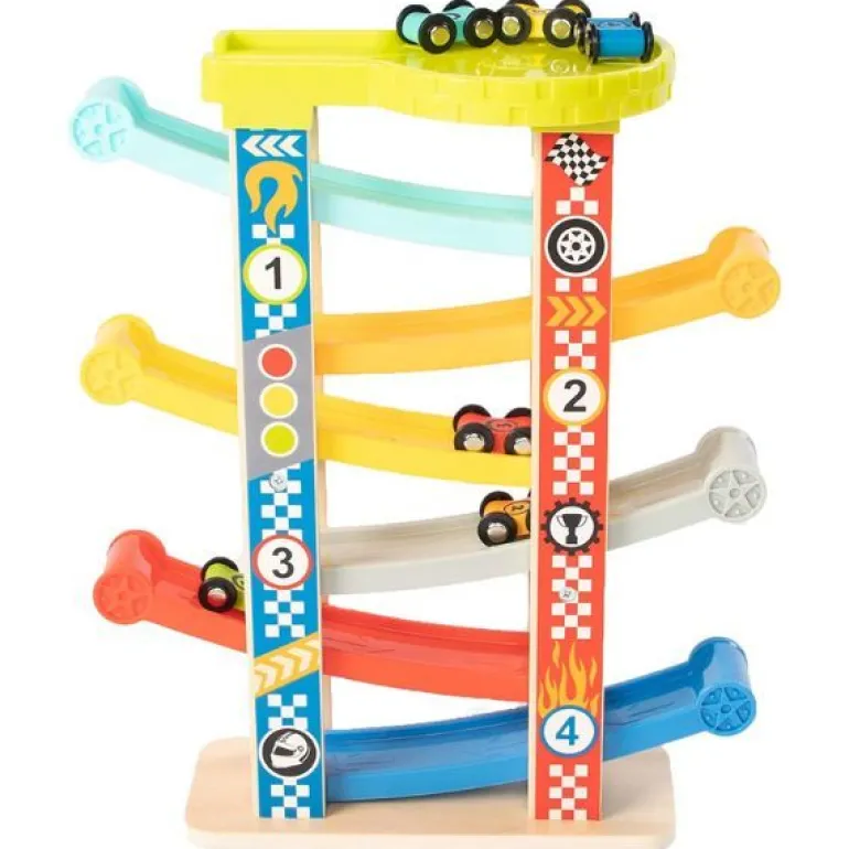 – Includes tower, 6 numbered cars