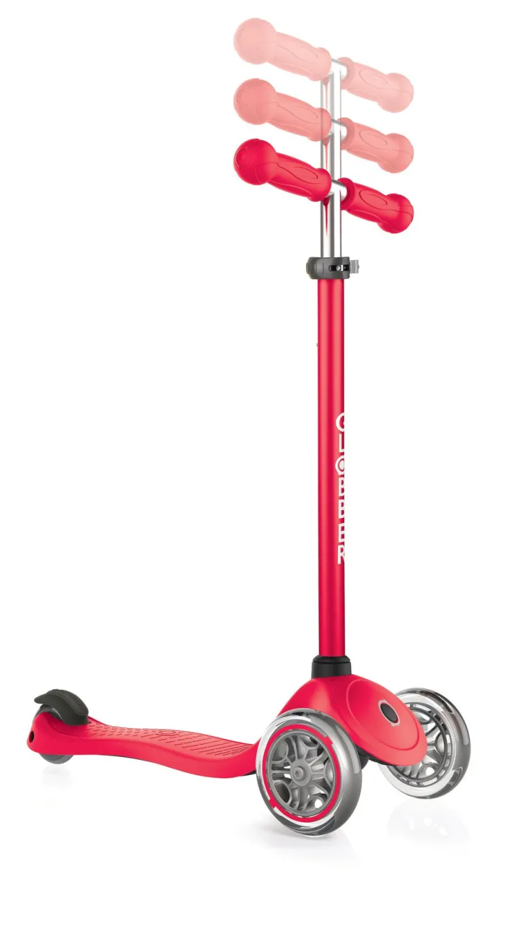 The Globber Primo Scooter is one of the best 3 wheel scooters on the market with its simple and fun design which is built for kids to enjoy scooting. Designed for children 3 years and older” the Primo is built around the composite deck with reinforced body frame and a 4 height aluminium T Bar which can be adjusted to suit kids up to the age of 9. Globbers’s patented steering lock system fixes the steering so that the two front wheels move forward and back so that kids can learn how to balance with ease. The Primo rolls on high-rebound PU casted front & back wheels mounted on ABEC 5 bearings for reliable and smooth riding. The Globber Primo Scooter is a great first scooter for any kids that wants to learn with the balance of 3 wheels and an a simple design which is easy to ride.