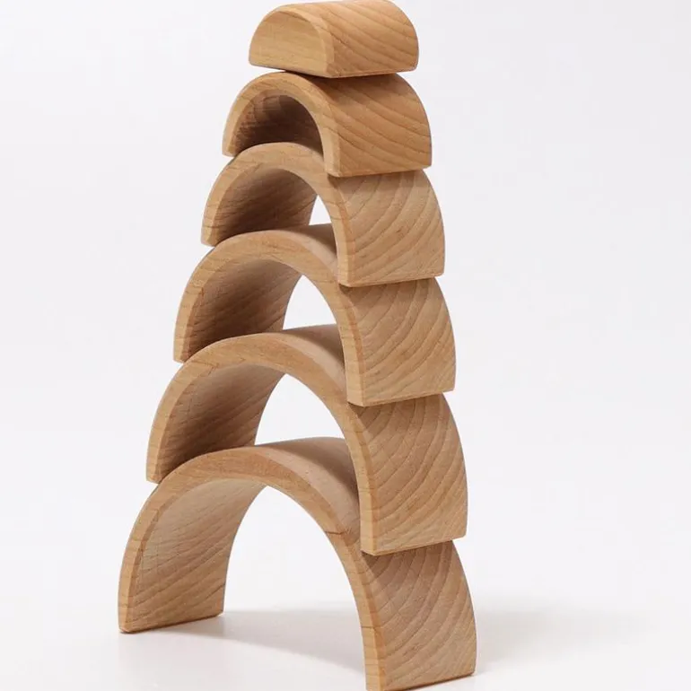 The Rainbow is a Grimm’s Spiel & Holz signature, and is a wonderfully versatile toy. Turn it around and it can be a cradle for a doll, stack it up and it turns into a whimsical tower, lay it in a row and it is a tunnel for your trains or flyovers for your cars. The possibilities do not end..