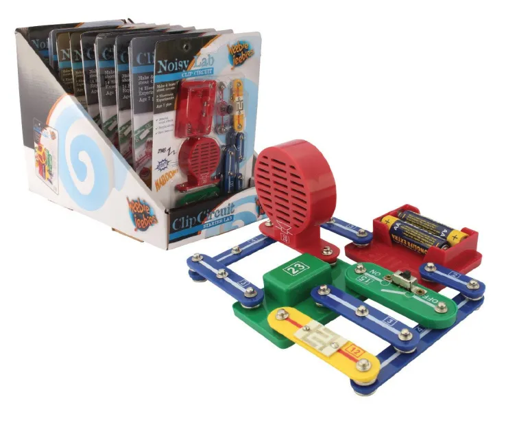 Create sounds with this easy to use electronics kit. An assortment of sound effects that you can control using a variety of switches. Components simply clip in, no messy solder required.