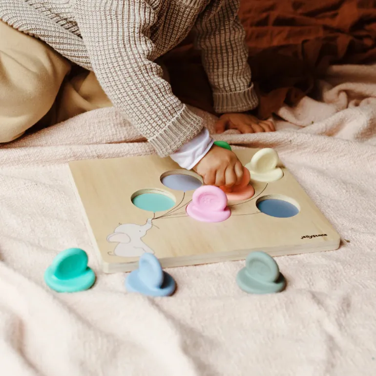 Little ones can develop their colour recognition by matching the silicone tops to the corresponding coloured balloon. Safe and toxic-free, the silicone tops are chewable and have little footprints on the base for fun with messy play in playdough, cloud dough, mud and more!