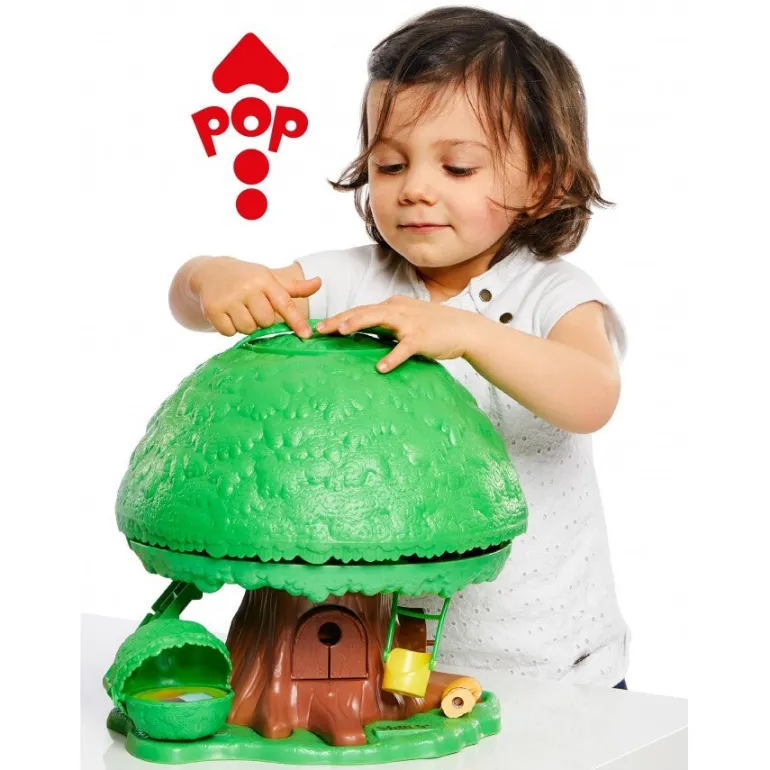 Simply press the roof and it pops open to reveal the magic inside. Once open you will discover the various rooms (living, kitchen, bathroom and garage), swing, wind up lift, car, characters and furniture. great for promoting imaginative play. The Tree House can then be easily stored away with all items inside, and can be easily transported by its handle.