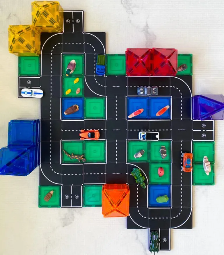 We love how easily they snap on to your existing square magnetic tiles, giving your child the opportunity to create amazing roads and highways. Every day, a different road network!