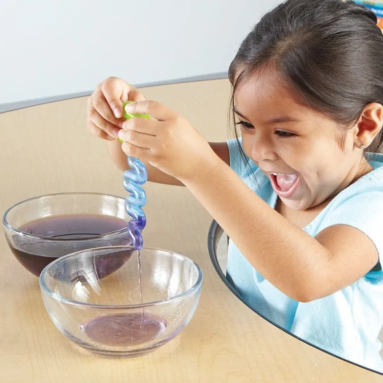 **Includes a squeezy bottle, spinner, wavy dropper, and scooper sized just right for toddlers’ hands