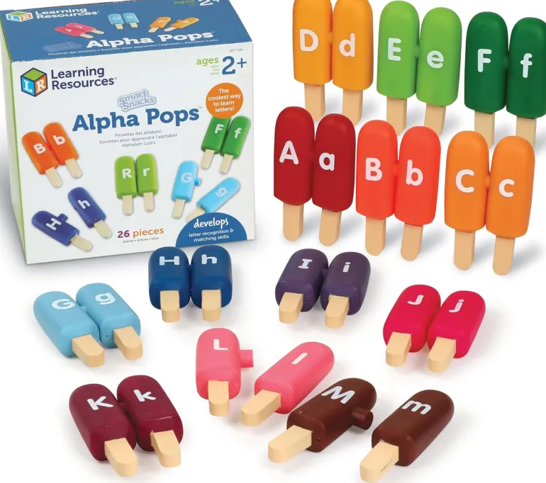 Explore the delicious world of letters with Learning Resources – Smart Snacks Alpha Pops! These frosty treats are double-sided for 26 letter matching. Self-check by color for essential fine motor skill practice. And best of all? Encourage imaginative play while snacking on educational fun!