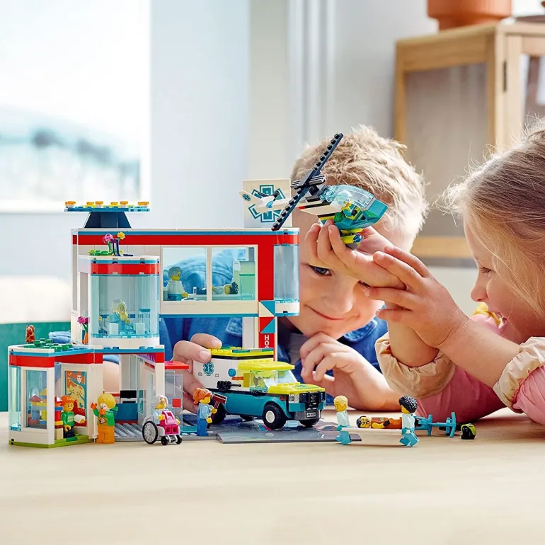 This LEGO City Hospital (60330) set is packed with inspiring features for imaginative play, including a front desk with kids’ playroom, maternity ward, toilet and an MRI scan room. The dolls hospital set also includes an ambulance toy truck and rescue helicopter, plus LEGO Road Plates for connection to other LEGO sets.