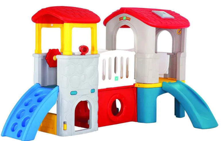 The Lerado deluxe playing center contains a Playhouse that features a skylight, drop-leaf table, 2 stools, message board, a clock with movable hands. It also comes with a climbing ladder with hand and foot holes & sure grip handrails assist. Combination climber and slide for children.