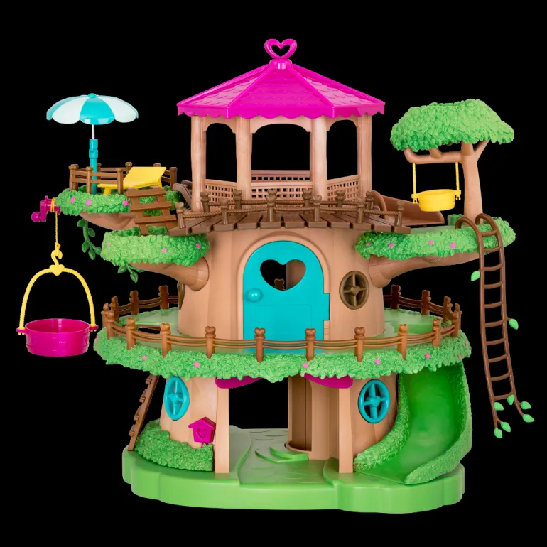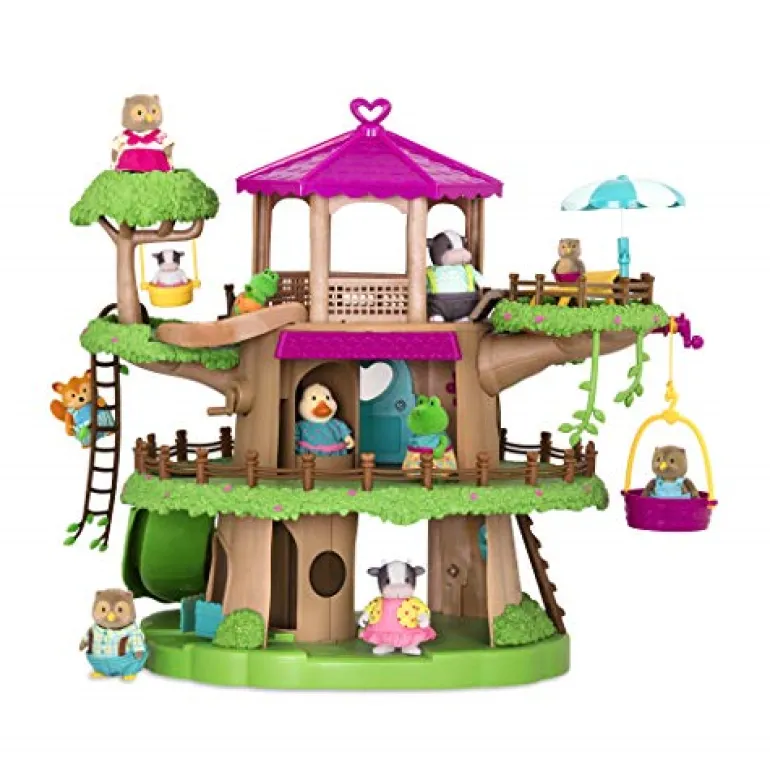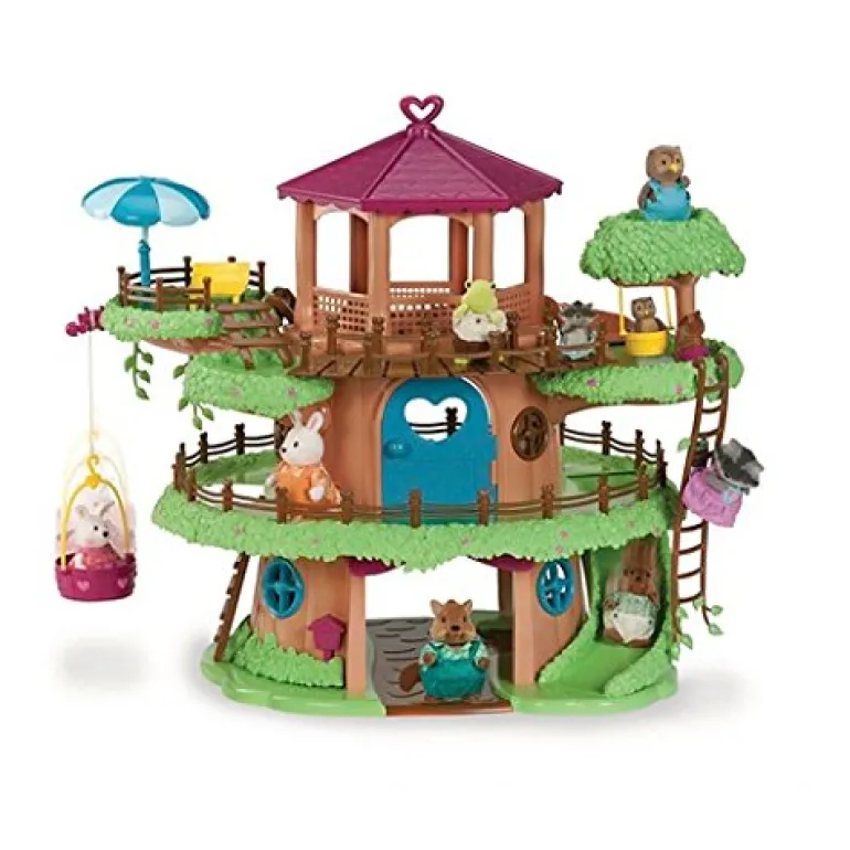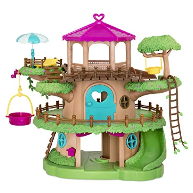 Build your Li’l Woodzeez collection with the Family Treehouse This 22pc playset has plenty of accessories to help you create a fun hangout spot for your animal figurines in Honeysuckle Hollow. There is a colourful treehouse with grass, flowers, and fencing around the edges so it looks just like the real thing. There are also branches, vines, and ladders so your Li’l Woodzeez nature-lovers can climb and swing through the trees. If they get too tired, they can take a rest in the sun chair under the parasol – how relaxing And the coolest thing?