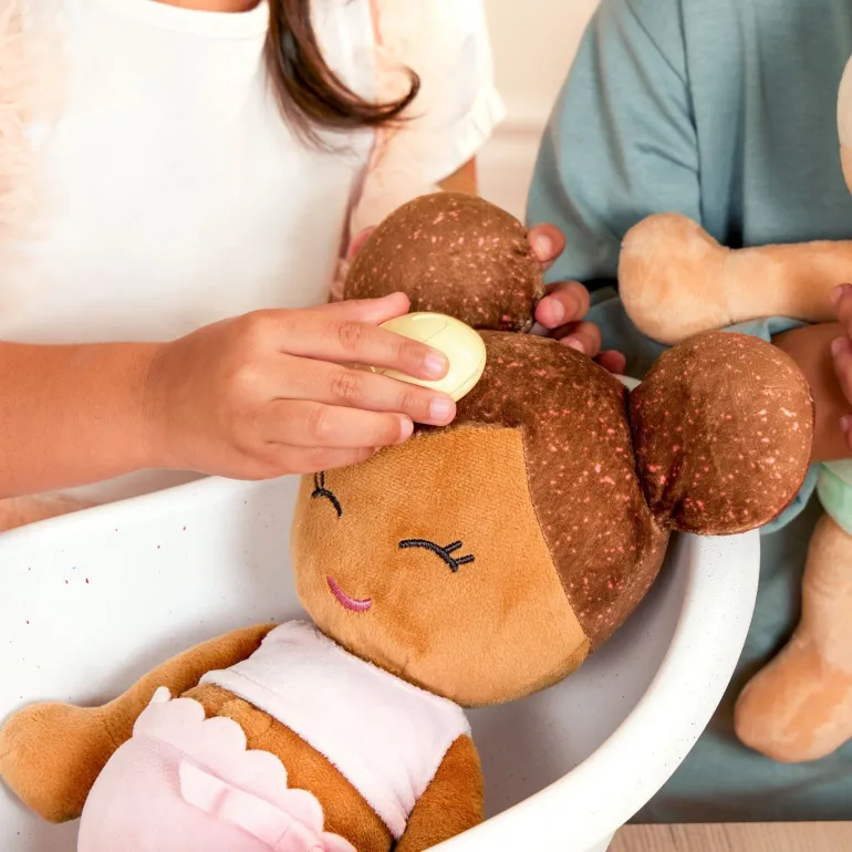 Give baby dolls a real bath with the LullaBaby doll bathtub set. Kids can fill up the tub with water and place their doll inside as they role-play fun bathtime routines. Plus, it also includes cute bath toys like a bar of soap, a bottle of shampoo, 2 tub toys, 2 bubbles, and a washcloth – everything little ones need to bathe baby! LullaBaby accessories encourage imagination and inspire kindness as kids care for their dolls in (and out) of the tub. Fits most 14″ baby dolls. For real water play, use plush LullaBaby bath dolls or explore the joys of pretend baths with LullaBaby dolls (each sold separately). Makes a wonderful gift for kids ages 2 years old and up. Safety tested to meet all regulatory phthalates and BPA requirements.